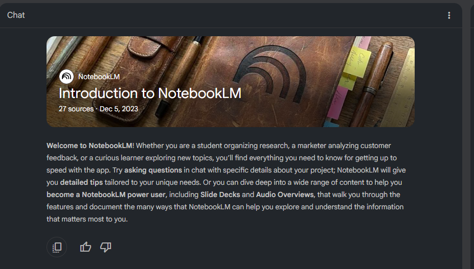 27 built-in sources explaining how NotebookLM works